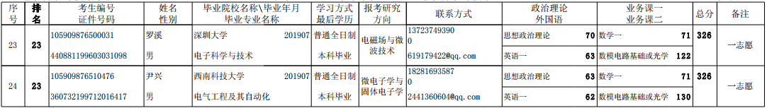 - 11-13深圳大学电子科学与技术学院考研拟录取名单