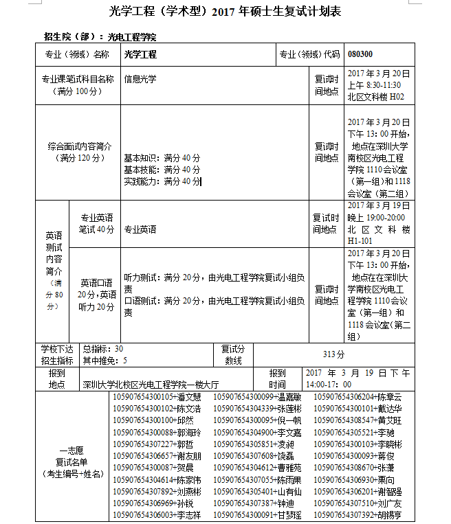 - 11-27深大光电工程学院(学硕)考研复试名单