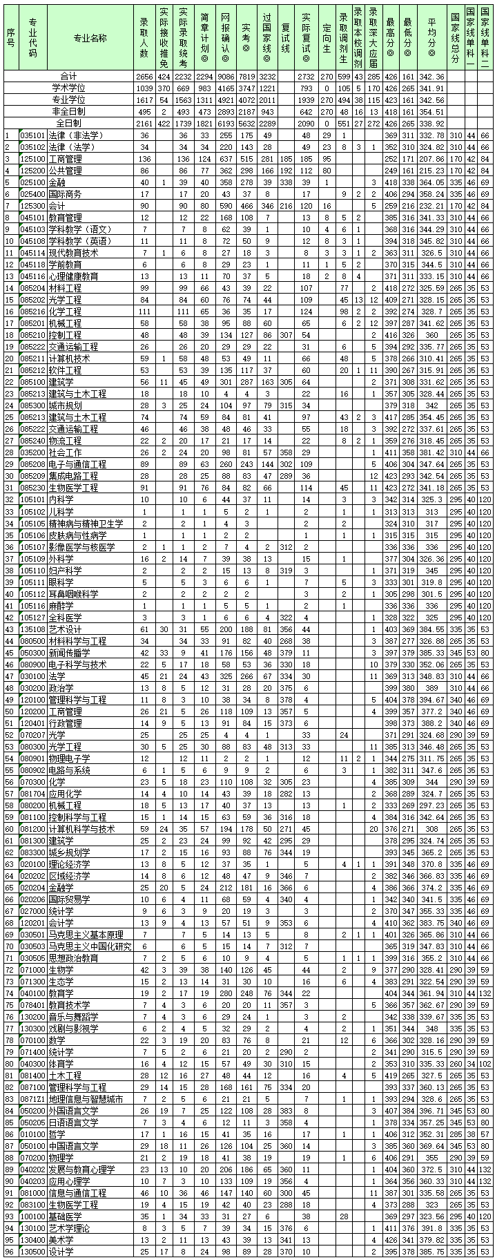5、所有专业均未接收破格生,不再招收同等学力考生。复试线空白表示按国家线。