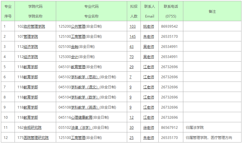 重磅发布 | 深圳大学2024年硕士研究生招生专业目